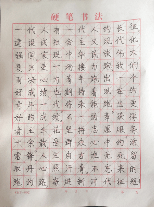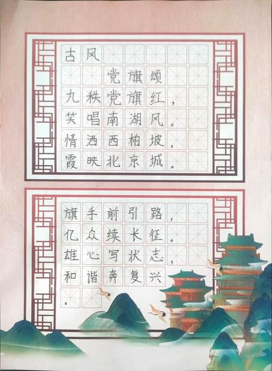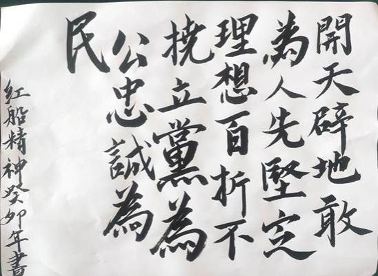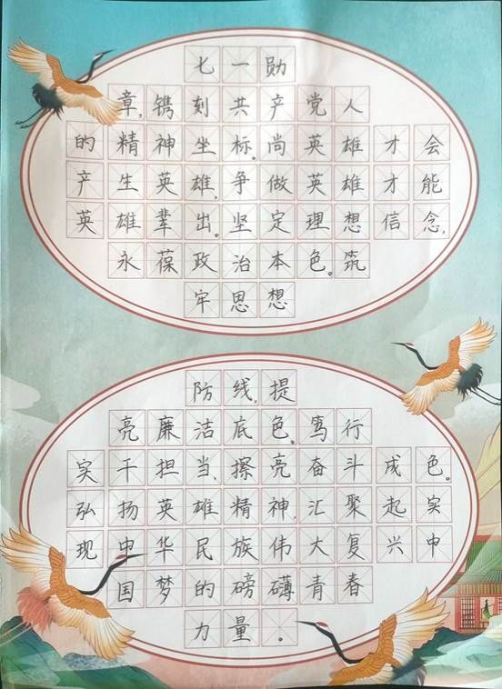 本科生第二党支部学生党员用刚健而柔美,俊逸而挺秀的书法展示出对七一获得者的敬佩,表达了作为学生党员拼搏奉献,把许党报国、履职尽责作为人生目标,不畏艰险、敢于牺牲,苦干实干、不屈不挠的意志和决心,相信在接下来“不忘来时路,奋进新征程”会成为第二党支部每一位学子的座右铭,创造出属于他们自己的精彩篇章!