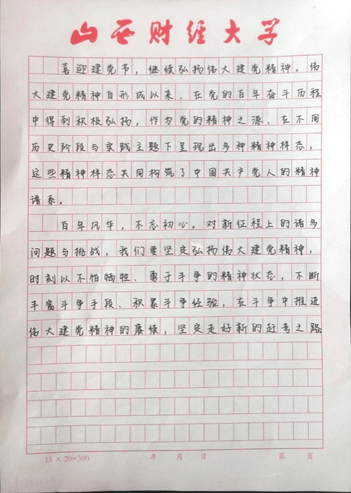 本科生第二党支部特开展以“不忘来时路,奋进新征程”为主题的教育活动征集书法作品,鼓励广大师生用书法阐释七一精神,传承七一精髓。