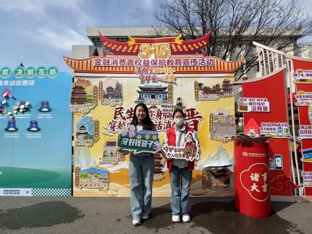 同时,为了让金融知识真正接地气、入脑入心,宣教活动在校园中精心打造了四大功能各异的沉浸式互动宣教区域。四个展区分别围绕“投沙包知风险,谨防征信修复诈骗”、“投镖知权益,警惕诈骗保护财产安全”、“权衡在前,决断在后,远离非法校园贷”、“民生带您身临其晋,穿越时空对话消保”等核心风险主题,结合大学生高频接触的金融场景,将抽象的金融法律条文、专业的风险防范知识转化为直观易懂的图文解析与互动问答设计,吸引大批学生积极参与、驻足体验。通过沉浸式、趣味化的体验方式,有效激发了学生学习金融知识的主动性,引导大家树立科学、理性的金融消费观念,全面提升金融网络风险防范能力。