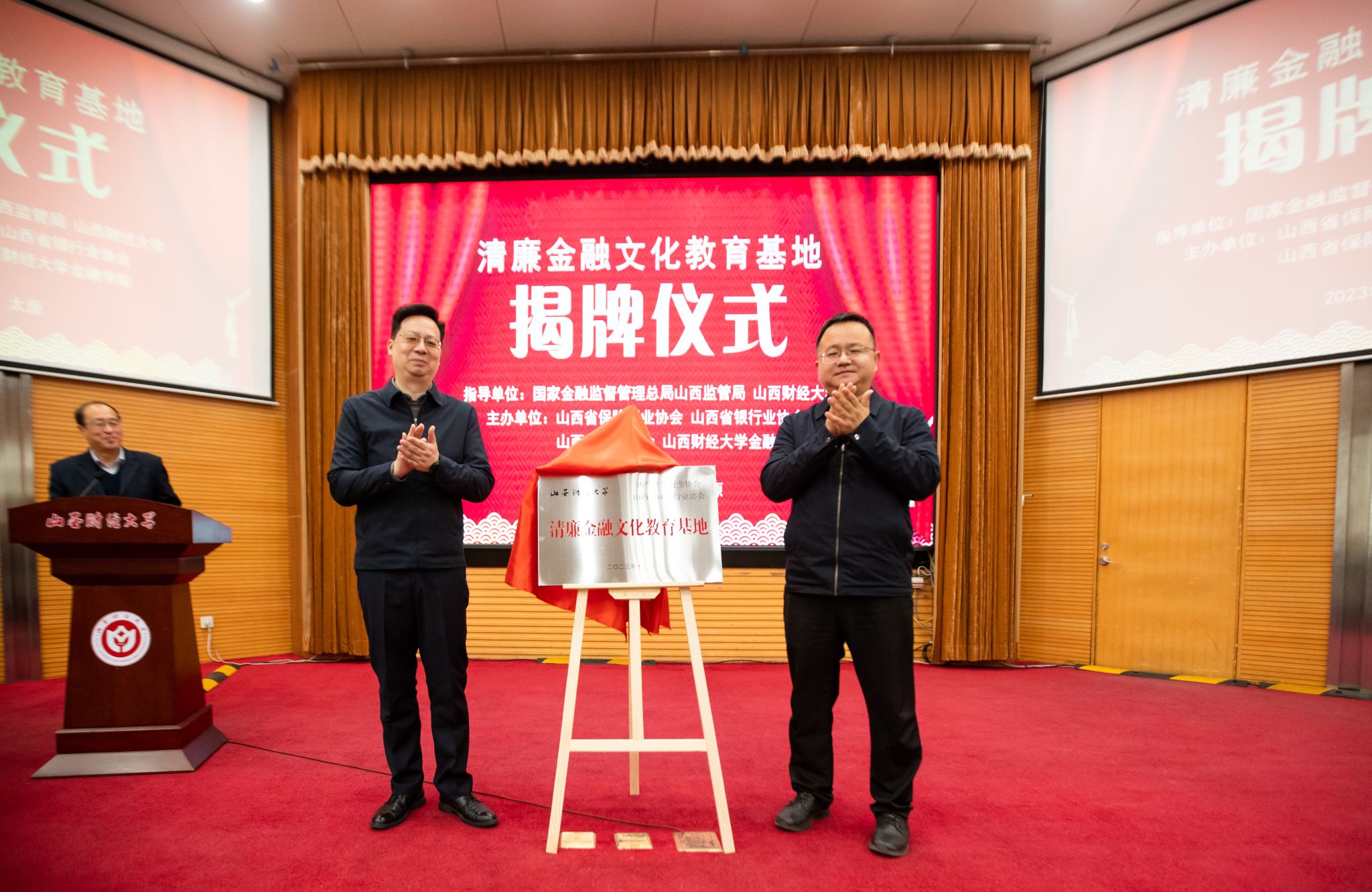 国家金融监督管理总局山西监管局纪委书记左鹏和山西财经大学纪委书记卢平共同为共建“清廉金融文化教育基地”揭牌。
