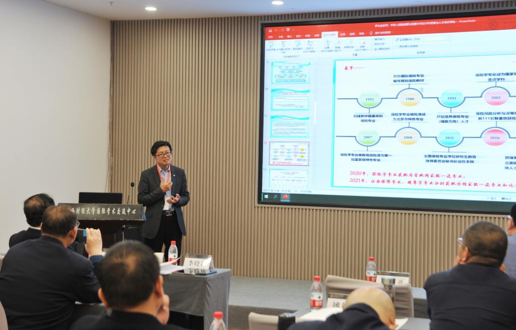 中央财经大学保险学院院长李晓林教授作了关于《对接国家重大发展战略和保险行业发展关键人才需求,做好保险专业学位研究生教育工作》的主题发言。李教授指出:我国保险专硕教育面临的问题主要是保险专硕教育培养的学生质量和社会需求存在一定的差距;目前学校的核心困难是缺乏双师型的师资队伍;我国保险专硕教育下一阶段的评估体系重点突出了学校与行业的关系。李教授还详细介绍了中央财经大学金融专硕和保险专硕的课程体系和实验室建设。