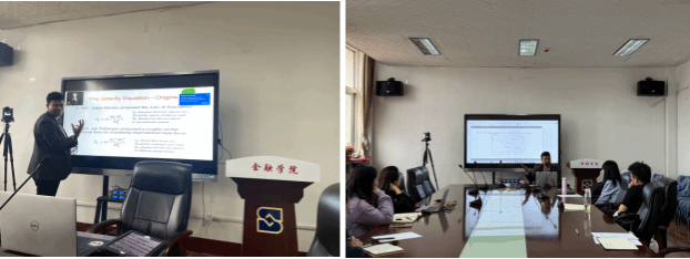 7名博士研究生讲授纯英文课程《The Global Economy》。该课程系统讲授了国际贸易与国际金融的核心理论与应用实践。贸易部分内容包括比较优势理论、要素禀赋理论、贸易政策工具与政治经济学分析,并结合发展中国家贸易政策的争议与挑战进行深度探讨;金融部分则围绕国民收入核算与国际收支、外汇市场与汇率决定机制、金融全球化与危机演变,以及发展中国家的经济增长、危机与改革等议题展开。授课过程中,Sushanta教授实时演示了国际主流数据库的使用方法,结合最新贸易与汇率数据进行案例分析,理论与实务紧密结合,极大丰富了课堂内容,提升了博士生的理论素养与数据分析能力。